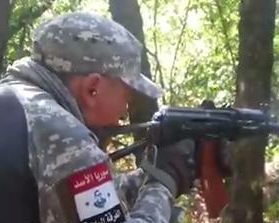 На руці в нього "красується" шеврон із портретом президента Сирії Башара Асада.