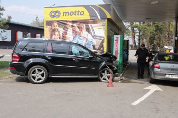 За інформацією правоохоронців, Hyundai з дитиною в салоні їхав з боку Києва і зупинився на повороті на Козин на світлофорі. У цей момент в нього на повному ходу влетів Mercedes. Від удару Hyundai викинуло в кювет, а чорний позашляховик продовжив рух і, врізавшись ще і в Audi, зупинився в стіні заправної станції.