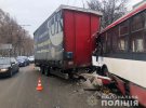 У Києві на вулиці Вишгородській вантажівка протаранила тролейбус із пасажирами. Постраждало 18 пасажирів — 11 дітей і 7 дорослих. Їх із травмами легкої та середньої ступені доправили до лікарні.