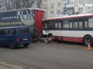 Під час руху від вантажівки відчепився причіп і зіткнувся з тролейбусом.
