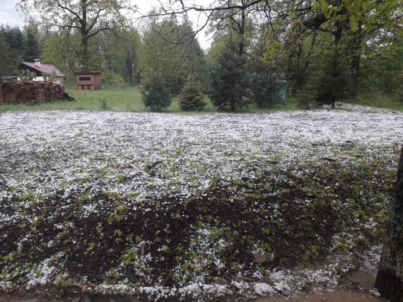 Злива з градом, розміром з куряче яйце пройшла сьогодні, 20 травня, у селі Вигода, Долинського району на Івано-Франківщині.