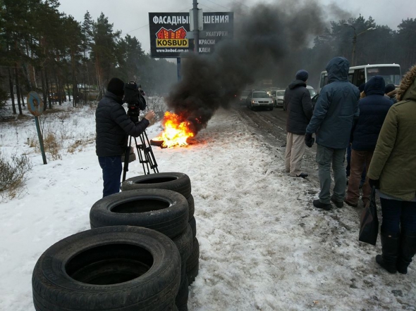 Люди заблокували по одній і дві смуги на дорогах. На Бориспільській і Одеських трасах палять шини. На дорогах утворились затори. На акції протесту прибула патрульна поліція.