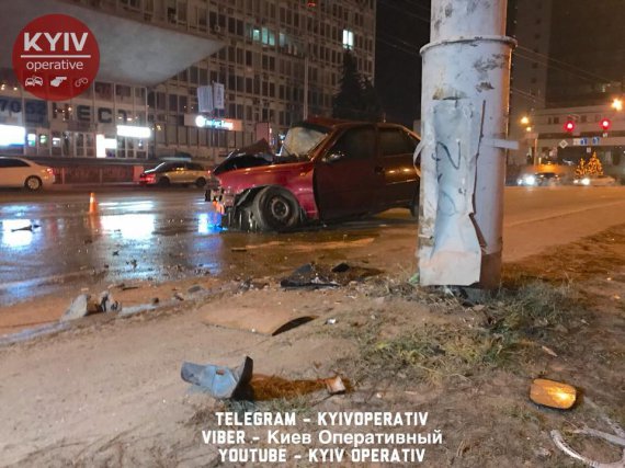 "Водій автомобіля Daewoo Nexia, д.н.з. AA0040PT, рухаючись по вул. Митрополита Липківського в сторону Солом'янської, біля Солом'янської площі втратив керування над автомобілем і на великій швидкості в'їхав пасажирської стороною в електроопору. Від удару автомобіль Daewoo почав горіти. На щастя, в салоні авто, крім водія, нікого не було і він зміг самостійно вибратися з палаючого авто", - сказано в повідомленні.