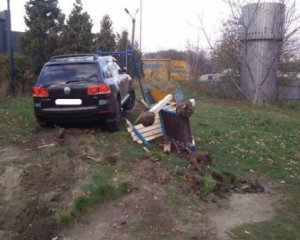 "Водій на позашляховику Volkswagen Touareg спочатку вдарив припаркований автомобіль Nissan, потім вдарив автомобіль BMW, який за інерцією вдарив автомобіль Mazda. Ці зіткнення не зупинили порушника, і він заїхав на дитячу площадку. Там зніс на своєму шляху дитячу гірку, а зупинився в гойдалці. Один з очевидців події ледве встиг забрати дитину", - йдеться в повідомленні патрульної поліції Львівської обл.