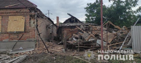 "Зруйновано та пошкоджено 38 об'єктів – 31 житловий будинок, теплоелектростанція, фільтрувальна станція, ангар, поле з пшеницею, цивільні авто", – додали в поліції.