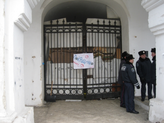 Нагадаємо, що вночі о 4:50 до галерей Гостинного двору увірвалось 12 осіб. У них чергували шестеро захисників, четверо музикантів та священник з дружиною. У приміщення напустили сльозогінного газу. Людей побили і випхали на вулицю. Священника з дружиною залишили у заручниках.