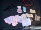 Вимагача зупинили на авто Volkswagen після того, як потерпілий передав йому гроші. Під час обшуку в авто та особистого огляду водія та пасажира поліцейські вилучили 3 пістолети марки Ekol major 9 mm P.A.K. із патронами, $450 та 7,2 тис. грн.