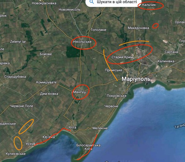 Зафіксовано розміщення живої сили в с. Мангуш, с. Нікольське, с. Кальчик та в районі станції Асланов біля с. Македонівка.