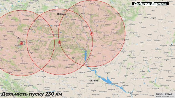 "Ця зона ураження дозволяє тримати під прицілом з території Білорусі не тільки столицю України, але й такі міста, як Житомир, Рівне, Луцьк та Львів", ‒ наголошує видання.