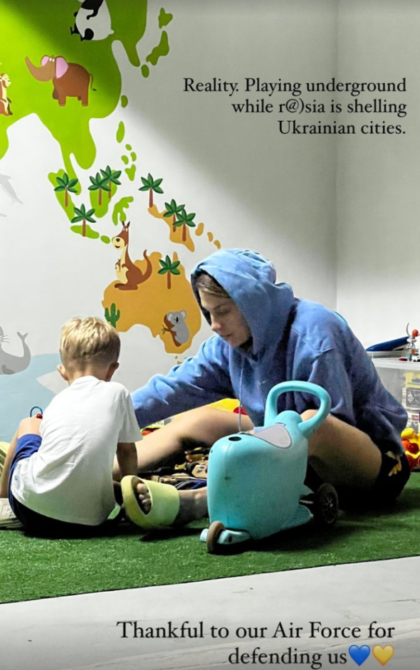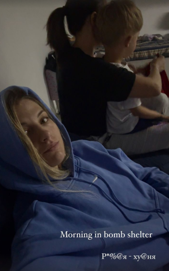 "Реальність. Граємось у бомбосховищі, поки Росія обстрілює українські міста. Дякую нашим Повітряним силам за те, що вони нас захищають", - написала спортсменка.