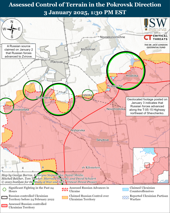 3 січня російський "воєнкор" продовжував стверджувати, що війська РФ перетнули річку Жеребець і просунулися до Іванівки (на північний захід від Кремінної), але в ISW досі не знайшли підтвердження цієї заяви.