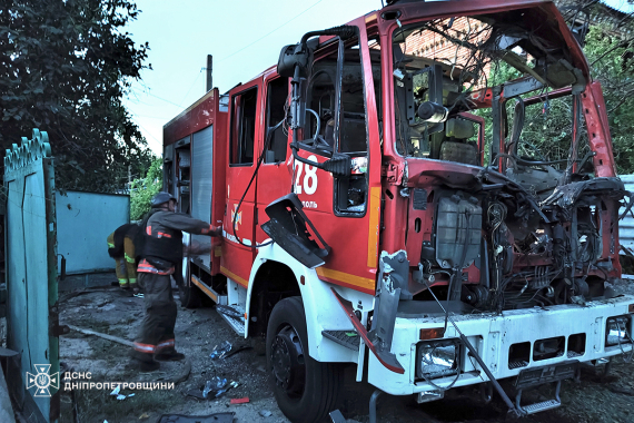 Внаслідок ворожого обстрілу було пошкоджено пожежно-рятувальний автомобіль. Рятувальники встигли перейти в укриття.