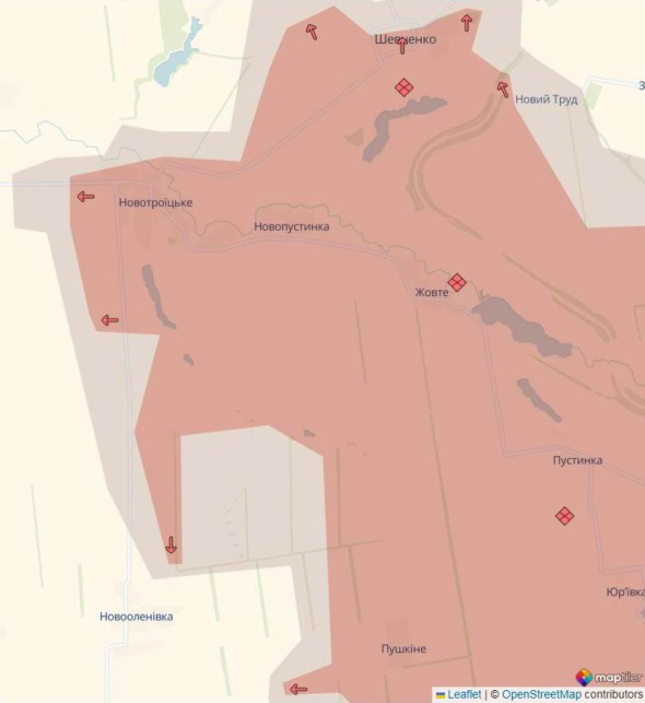 Ворог загарбав Веселий Гай, Єлізаветівку, Романівку, Новотроїцьке, Пушкіне Донецької області, повідомив аналітичний ресурс DeepState.