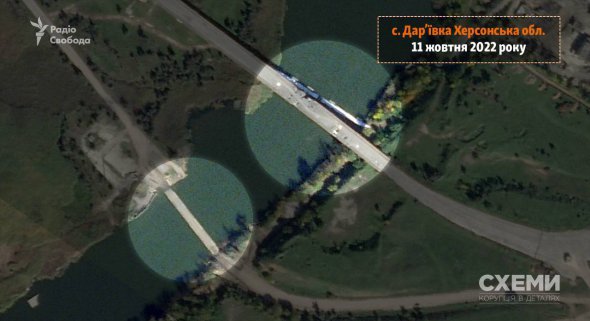 "Одна із цих переправ розташована впритул до Дар'ївського мосту, а інша – на відстані у понад 100 м. Остання, схоже, зведена окупантами на заміну тій, що була раніше, і яку також знищили ЗСУ ракетними ударами, ще 5 вересня", – ідеться у повідомленні.