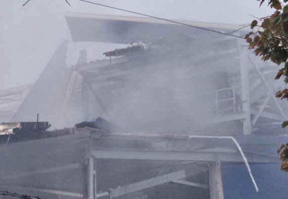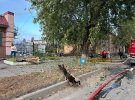 Рятувальники гасять пожежу на СТО. Палають також дві автівки. Вибиті вікна в двоповерховому будинку поруч. Також постраждав заклад профтехосвіти. Учні були в укритті, серед них постраждалих немає.