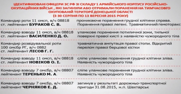 "За цей період на території України зі складу 1-го (донецького. - Ред.) та 2-го (луганського. - Ред.) армійських корпусів загинули 627 осіб, отримали поранення 2155 осіб", - додав представник управління розвідки.