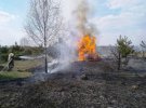 Рятувальники гасять лісову пожежу в районі села Андріївка Чернігівської області.