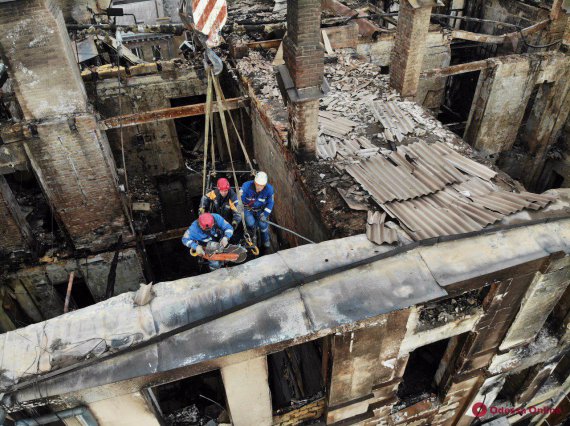 Рятувальники продовжують розбирати завали у внутрішній частині будівлі Одеського коледжу економіки, права та готельно-ресторанного бізнесу.