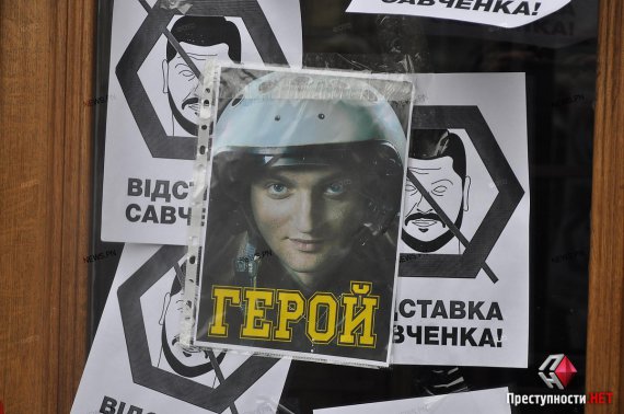 Учасники мітингу вимагають відставки глави ОДА Олексія Савченка, повідомляє "ПН.нет".