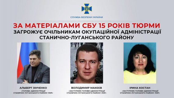 Поплічники окупантів – колишній керівник Станично-Луганської військово-цивільної адміністрації та двоє його заступників – підтримали окупантів та очолили "адміністрацію" на окупованій території, повідомляє пресслужба СБУ.