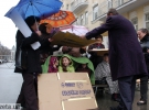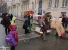 За півгодини приїжджає Алла з молодшими дітьми. Вони у шкільній формі та портфелями з книжками. Розкладачки ставлять під дощем. Їх застилають старими картонними коробками. Діти, накриті простирадлом, аби не змокнути, тримають в руках плакати: "Дядя Витя, помоги!!!" та "Мы не хотим быть бомжами!".