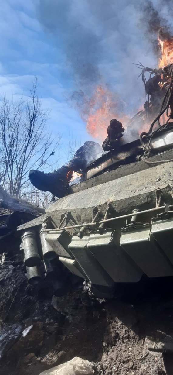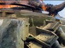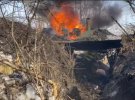На фото видно, як техніка палає разом з російськими терористами.