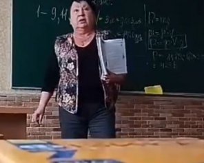На відео видно вчительку, яка записує на дошці домашнє завдання, повертається до класу й говорить: "Хто щолкаєт?". Далі йде до парти учня.