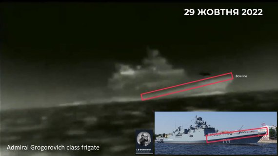 На один безпілотник скинули вибухівку. Після чого трансляція на БПЛА перервалася. На відео також потрапила атака на кораблі класу "Адмирал Григорович" і "Адмирал Макаров" і на тральщик "Іван Голубец".