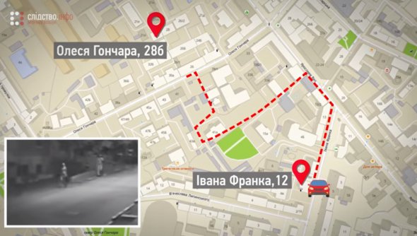 Також журналісти "Слідство.Інфо" зазначають, що квартал, в якому сталося вбивство, — старої забудови та має багато прохідних дворів і провулків. Проте відео, яке підтверджувало б, що підозрювані "через двори повернулися на вул. О. Гончара", як зазначено в тексті підозри, ні поліція, ні журналісти не показували.