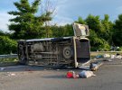 Мікроавтобус Mercedes Sprinter, який рухався по вулиці Головній, перекинувся на дах. За попередньою інформацією, причиною аварії стала технічна несправність - лопнуло одне з коліс транспортного засобу, розповіли у поліції.