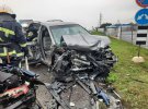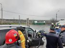 "З автомобіля Volkswagen Passat B6 рятувальники допомогли медикам перенести до "швидкої" травмованих жінку та чоловіка. В Honda Odyssey загинула жінка.Через загрозу вибуху та пожежі рятувальники відключили клеми акумуляторних батарей у машинах та змили паливно-мастильні матеріали з проїжджої частини дороги", - сказано в повідомленні.