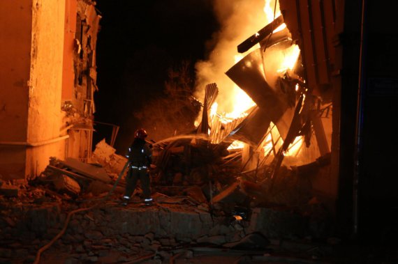 "Триває гасіння окремих осередків пожеж і пошук людей під завалами. За попередніми даними в результаті руйнування житлового будинку загинули сім і постраждали 17 людей. Чотирьох з них витягли з-під завалів", – розповіли рятувальники.