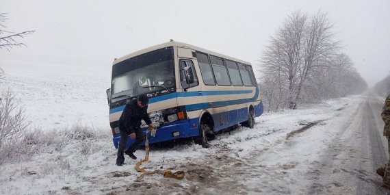 На Вінниччині рятувальники надали допомогу водієві автобусу, який, не впоравшись із керуванням в умовах сильного снігопаду, з'їхав з проїжджої частини дороги. У Літинському районі працівники ДСНС допомагали автомобілеві екстреної медичної допомоги, який застряг на ґрунтовій дорозі.