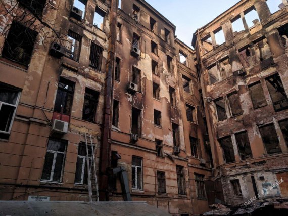 На фото, опублікованих odessamedia.net , видно, що від крила будівлі залишилися лише зовнішні стіни. Всі внутрішні конструкції і дах обвалилися.