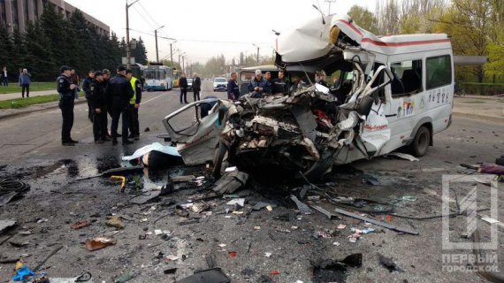 ДТП у Кривому Розі сталася зранку 17 квітня. За повідомленнями місцевих ЗМІ, легковик Mazda поїхав на миготливий жовтий сигнал світлофора. У результаті протаранив маршрутку, яку відкинуло на автобус із працівниками заводу ArcelorMittal.