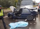 За попередньою інформацією, водій таксі Renault не впорався з керуванням на слизькій дорозі та виїхав на смугу зустрічного руху, де потрапив під вантажівку "ЗІЛ", повідомляє "Еспресо".
