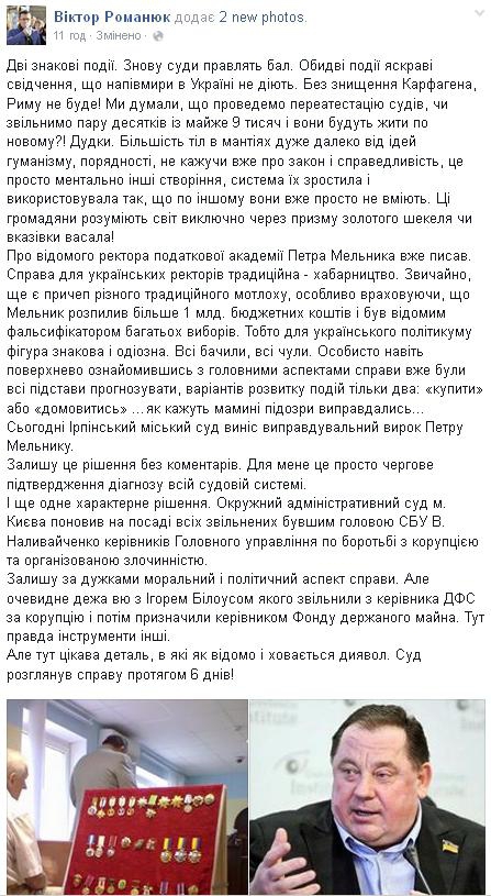 У середу, 8 липня, Ірпінський міський суд виправдав колишнього ректора Національного університету державної податкової служби Петра Мельника, викритого влітку 2013 року у хабарництві.