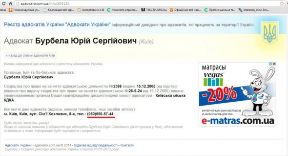 Про те, що цей телефон належить саме судді Юрію Бурбелі, можна дізнатися з іншого відкритого джерела - реєстру адвокатів України. До призначення суддею Юрій Бурбела працював адвокатом, і його контакти досі зберігаються в реєстрі.