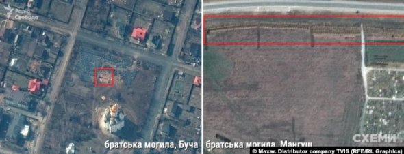 Довжина траншеї у Мангуші - 300 м. Для порівняння - у братській могилі біля церкви у Бучі - 14 м. Там були виявлені тіла 70 осіб.
