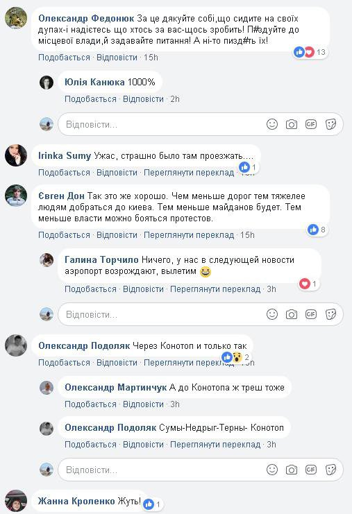 "Розмило частину дороги Суми - Прилуки - Київ (під Ромнами), глибина майже 1,5 метрів. Дорожники намагаються відвести потік у сторону (але особливо нікуди), якщо не вийде - то капець", - написав Дідоф.