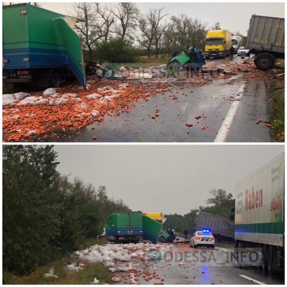 Тягач MAN і вантажний фургон Mercedes з декількома тоннами моркви зіткнулися на трасі Одеса-Миколаїв