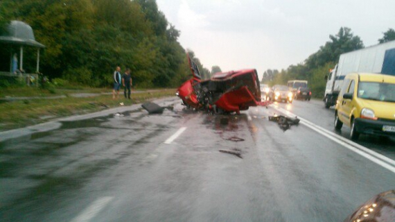 "Ішов дощ. На мокрій дорозі зіткнулися Volkswagen LT , Mercedes Sprinter та червоний ВАЗ. У перших двох машин зім`яті капоти, ВАЗ перекинувся після удару. Машину викинуло на зустрічну смугу. 26-річний водій машини помер у реанімації. Він був родом із Луцька", - говорить 25-річний Пилип, очевидець аварії.