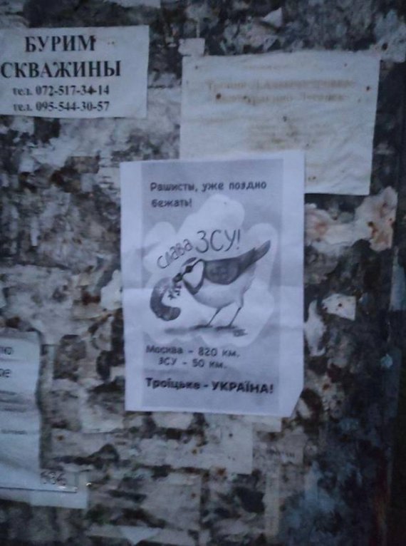 "Бійся, окупанте", "Троїцьке – це Україна", "Рашисти, вже пізно тікати. Слава ЗСУ" – послання такого змісту передали російським окупантам українські партизани. Про це повідомив голова обласної військової адміністрації Сергій Гайдай в Telegram.