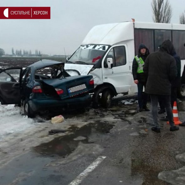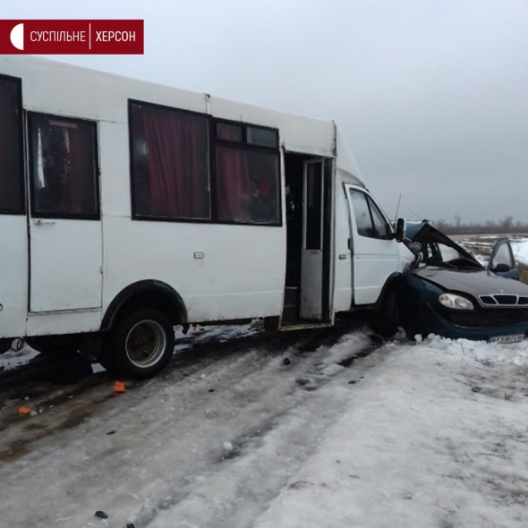 Там близько 8.:34 зіткнулися рейсовий автобус сполученням Снігурівка-Херсон та автомобіль Daewoo, за інформацією поліцейських.