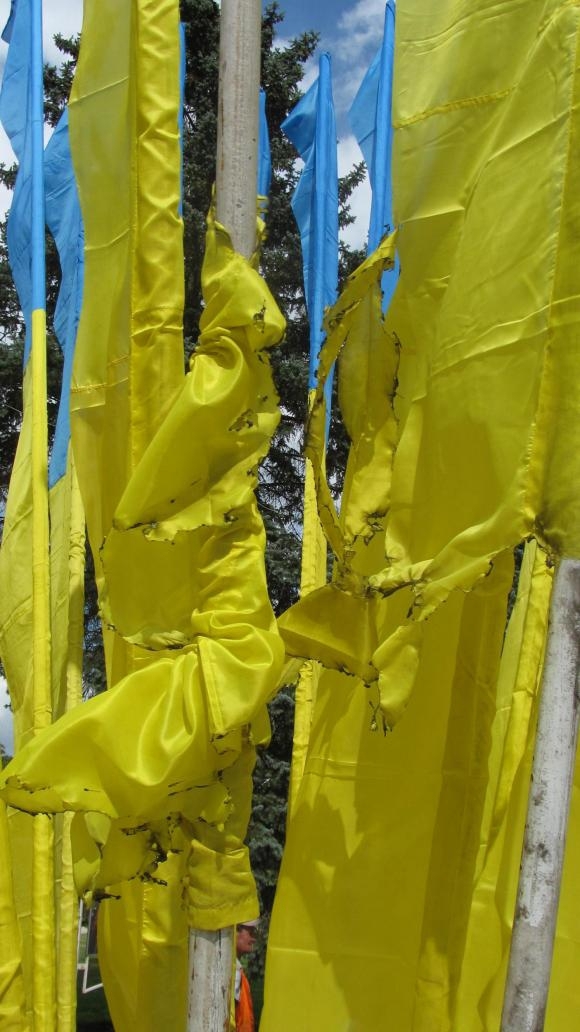 У центрі Донецька невідомі спалили українські прапори