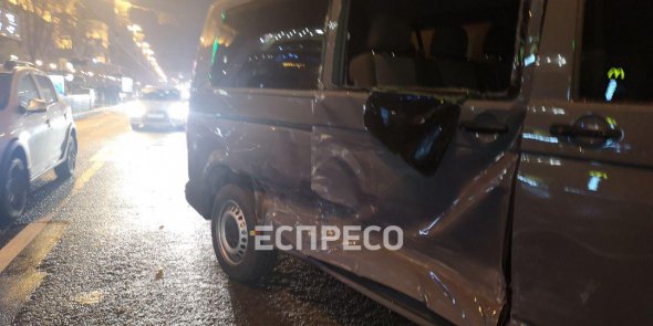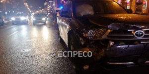 У центрі Києва позашляховик Toyota протаранив мікроавтобус Volkswagen, є постраждалі.