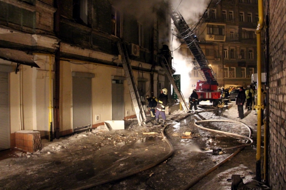 "Було загорання в офісному приміщенні. Приступили до гасіння. Через 3-4 хвилини в другій частині цієї будівлі вибухом було зруйноване перекриття між першим та другим поверхом, внаслідок чого загинула літня жінка 1927 року народження.