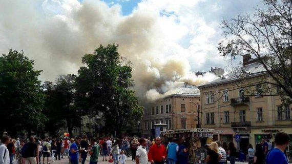 У центрі Львова на перетині проспекту Свободи та вул. Тиктора загорівся триповерховий будинок.