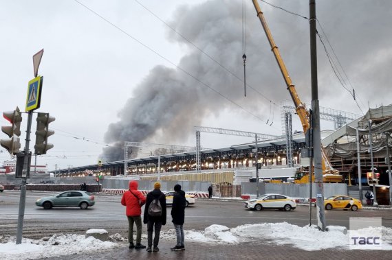 "Клуби чорного диму видно навіть із віддалених районів міста. Імовірно, горить складський будинок біля ленінградського вокзалу. Повідомляють, що пожежники вивели з вогню сім людей, решта залишаються заблокованими. Як передають російські ЗМІ, чути крики та прохання про допомогу", – повідомив радник міністра внутрішніх справ Антон Геращенко.
