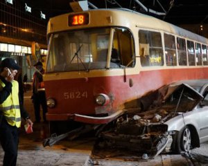 На Площі перемоги у Києві сталася ДТП - автівка врізалась у трамвай.